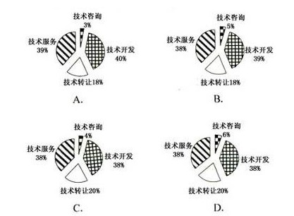 138、下列關(guān)于2006年技術(shù)開發(fā)、技術(shù)轉(zhuǎn)讓、技術(shù)咨詢和技術(shù)服務(wù)等四類合同占全國成交金額比重的圖形,描述正確的是( )