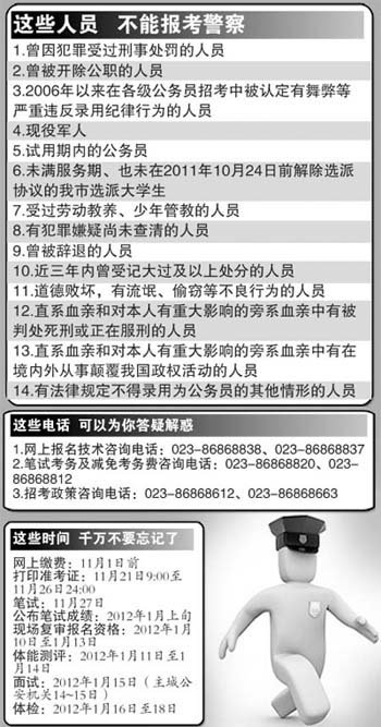 想當(dāng)警察的考生,請(qǐng)從即日起至28日24:00期間登錄重慶人力資源和社會(huì)保障網(wǎng)進(jìn)入報(bào)名系統(tǒng),提交報(bào)考申請(qǐng)。報(bào)考人員只能選擇一個(gè)單位中的一個(gè)職位進(jìn)行報(bào)名。