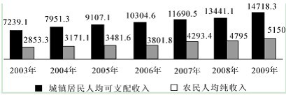 3.2003年至2009年H省城鎮(zhèn)居民人均可支配收入和農民人均純收入差距最大的年份是( )。