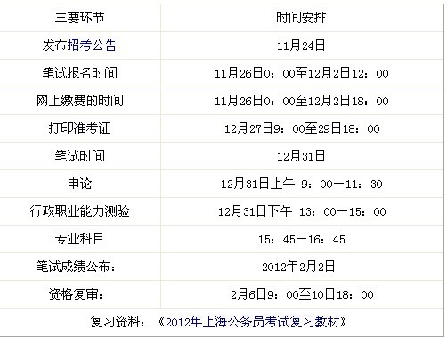 2012年上海市公務(wù)員考試時(shí)間安排