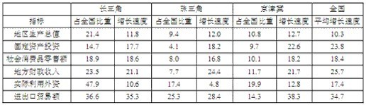 表2 2010年三大經(jīng)濟(jì)圈主要經(jīng)濟(jì)指標(biāo)(%)