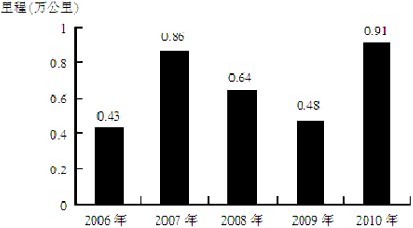 圖一 “十一五”期間全國(guó)高速公路年新增里程