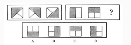 第一種題型:圖形推理。每道題給出一套或兩套圖形,要求報考者通過觀察分析找出圖形排列的規(guī)律,選出符合規(guī)律的一項(xiàng)。