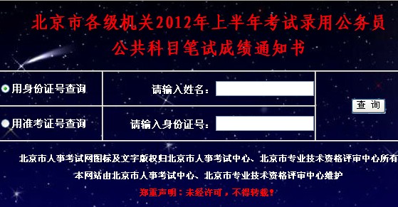 北京2012上半年公務(wù)員筆試成績查詢?nèi)肟?/h1>