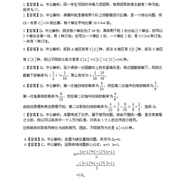 2013國考沖刺:排列組合與概率問題答案解析