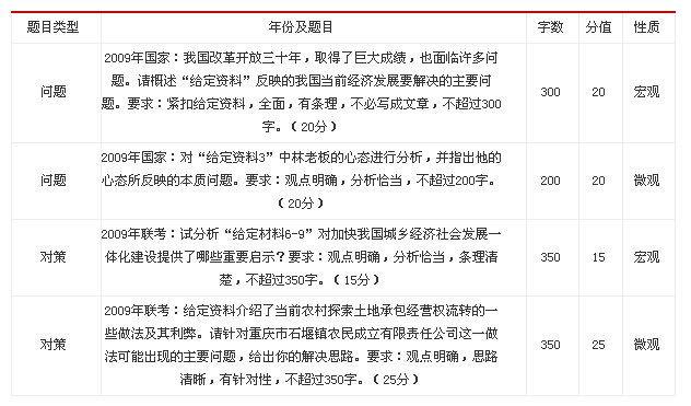 看過以上表格的人有可能會(huì)問什么是宏觀的題目,什么是微觀的題目。對于這兩類題型不用定義,看具體的題目就知道了。宏觀的題目就是給定很少的字?jǐn)?shù)寫一個(gè)很龐大的話題或內(nèi)容;微觀的題目則是針對具體、個(gè)別性的問題來提問的題目。
