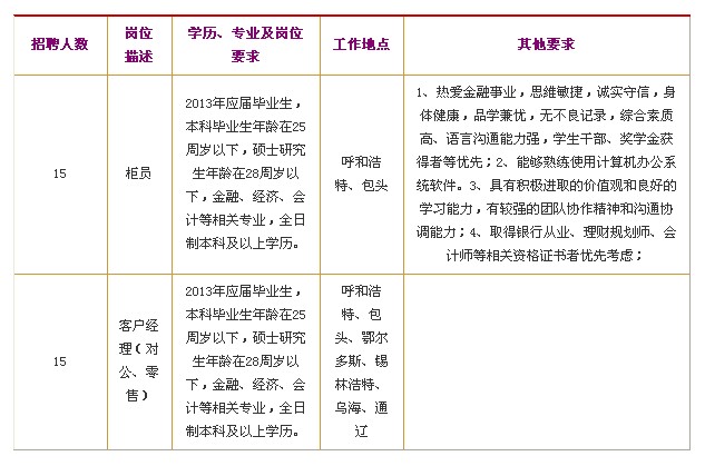 光大銀行2013年校園招聘啟事(呼和浩特分行)