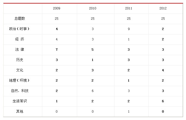2011年對時政的考查更加側重,點共囊括9題,貫穿于常識判斷類始末。其中第1題涉及十七大報告中的民生問題,第2題涉及我國在國際中的地位問題,第4題涉及第六次人口普查,第5題涉及2010年7月召開的西部大開發(fā)工作會議,第8、9題涉及我國剛剛修改和頒布的《國防動員法》和《選舉法》,第14、15題考查我國當前的匯率以及經(jīng)濟形勢問題,第16題考查2010年6月18日成立的副省級新區(qū)――重慶兩江新區(qū)。這些題目均為2010年2月份至2010年11月之間發(fā)生在我國的重大時政新聞。與我國國情相關的考試題目共有10題,如果再加上法律類3個題目,共有13題為國情類題目。該類問題反映了我國長期在政治、經(jīng)濟、建設成就、民族關系、基本國策、法治精神和法治進程中的普遍性問題。而具體的制度或文化內容所占比重小于該類問題。 對時事和國情的考查不是一時腦熱,而是國家公務員考試命題的要求。關心國計民生、了解國情社情、具備基本綜合管理能力是國家公務人員必需的,這決定了命題者在出題時必然側重對這些方面的考察。2006年――2008年全部考法律,這對今年常識來說不具有參考意義。但2009年至今,常識出題思路基本趨向于成熟。經(jīng)我們統(tǒng)計分析,2009年至2011年三年75道國考,有40道左右的題目與時政、國情有關。這就表示,25道常識題,有大部分是可以用較短的時間達成較好復習效果的。