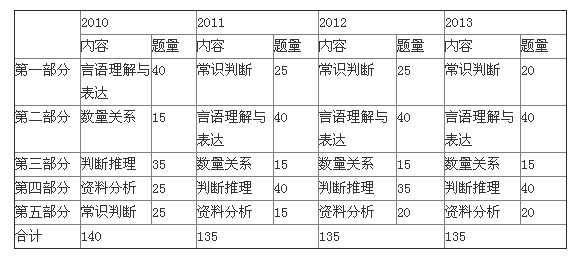 從考試內(nèi)容來(lái)看,延續(xù)了2012年的總趨勢(shì),總題量為135題,數(shù)量關(guān)系部分只考察數(shù)學(xué)運(yùn)算,依然沒(méi)有考察數(shù)字推理題型。同時(shí),判斷推理部分的類比推理增加了5題,判斷推理總題量回復(fù)到了歷史常規(guī)的40題。