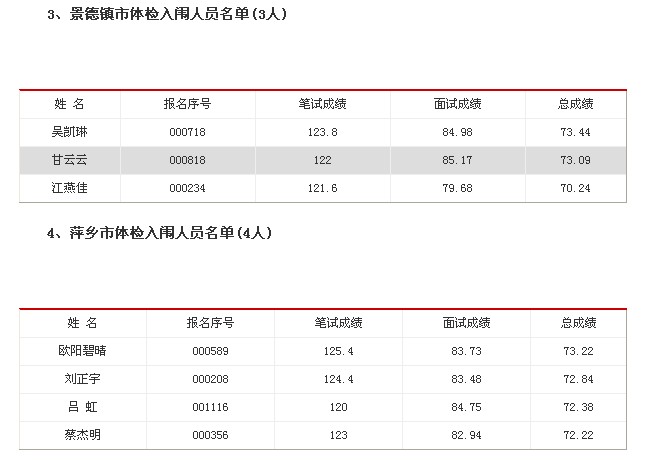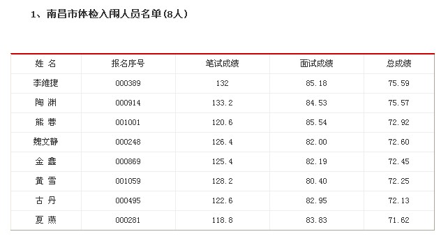 目前,面試工作已經(jīng)完成,考生考試總成績按筆試與面試成績各占50%的比例合成,體檢入圍人員根據(jù)考生考試總成績按各市選拔計劃數(shù)從高分到低分等額確定,體檢合格的考生進入考察。體檢的時間、地點、要求等有關(guān)事項,以各市通知為準。因體檢不合格等情況出現(xiàn)的空缺,由各市按考生考試總成績從高分到低分依次遞補體檢。