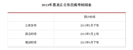2013年黑龍江省公務(wù)員考試安排時(shí)間表