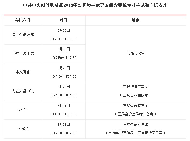 2013國考英語專業(yè)考試和面試:安排中共中央對(duì)外聯(lián)絡(luò)部