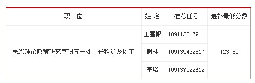 由于進入我委面試范圍的部分考生因個人原因自愿放棄或被取消面試資格,根據公務員考錄工作有關規(guī)定,在公共科目筆試成績合格考生中,按照職位成績由高到低的順序進行遞補。遞補人選名單如下: