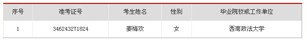 根據(jù)中共中央組織部、人力資源和社會保障部、國家公務(wù)員局關(guān)于中央機關(guān)及其直屬機構(gòu)2012年度考試錄用公務(wù)員有關(guān)工作要求,經(jīng)過筆試、面試、體檢、考察等程序,湖南省國家稅務(wù)局系統(tǒng)擬補錄姜梅歡同志為公務(wù)員,現(xiàn)將擬錄用人員名單予以公示(考生暫緩錄用的原因為體檢時懷孕,暫停了部分體檢項目)。