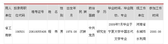 2012年河南省工商業(yè)聯(lián)合會(huì)擬錄用名單公示