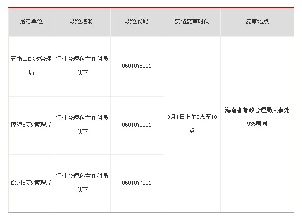 2013年公務(wù)員面試公告:海南省郵政管理局