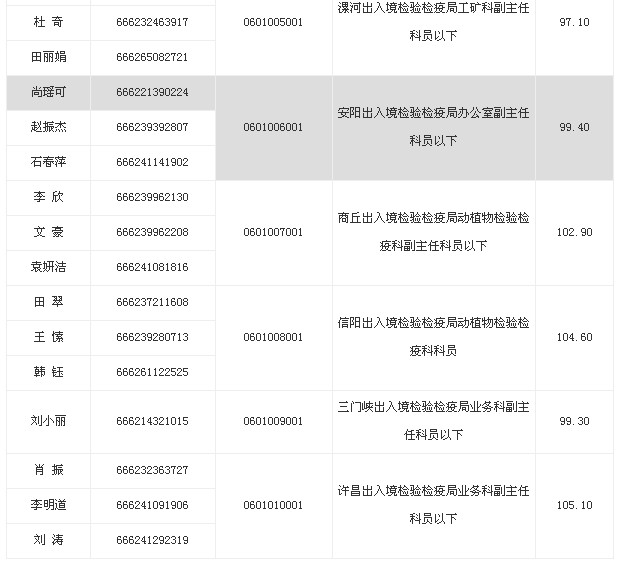 河南出入境檢驗檢疫局2013年度公務(wù)員考錄面試人員名單如下: