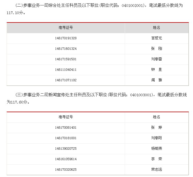 (一)辦公室文電檔案處主任科員及以下職位(職位代碼:0401001001),筆試最低分?jǐn)?shù)線為116.70分。