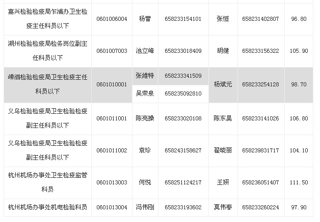 2013年國考面試遞補公告:浙江出入境檢驗檢疫局