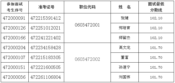 按照錄用人員與面試人員1:3的比例,人力資源和社會(huì)保障部依分?jǐn)?shù)高低確定以下人員參加我局面試。名單如下: