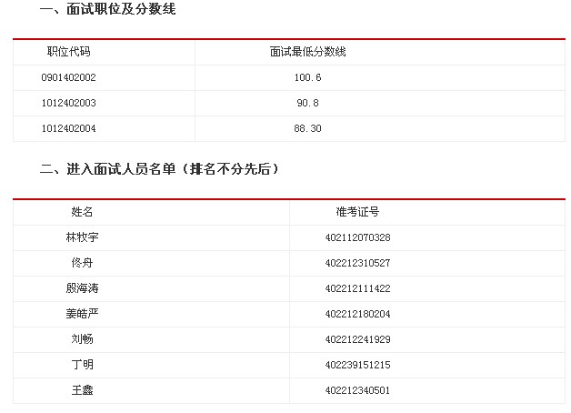 每個(gè)崗位參加面試人員按照面試成績和筆試成績各占50%的計(jì)算方法計(jì)算綜合成績,按照綜合成績從高到低1:1比例進(jìn)入體檢和考察。若現(xiàn)有崗位面試人數(shù)少于錄用計(jì)劃3倍的,考生的面試成績應(yīng)達(dá)到當(dāng)天面試考官組面試的所有人員的平均分,方可進(jìn)入體檢和考察。