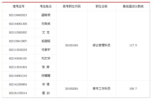 因部分考生放棄面試資格,按照公務(wù)員考試錄用工作有關(guān)規(guī)定,經(jīng)中央組織部審核,從公共科目筆試合格考生中,按筆試分?jǐn)?shù)排序依次遞補(bǔ)以下面試人員。請(qǐng)遞補(bǔ)考生按照《共青團(tuán)中央關(guān)于2013年招錄機(jī)關(guān)工作人員郵寄材料的通知》有關(guān)要求提供材料并參加面試。