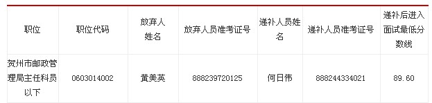 2013年國家公務(wù)員面試遞補(bǔ)公告:廣西郵政管理局