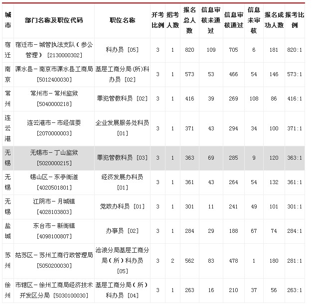 表三:江蘇公務員考試報考比高達820:1