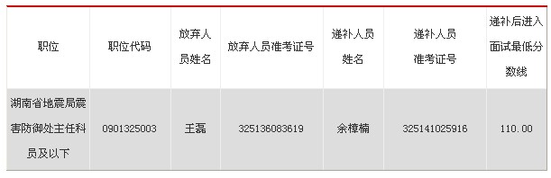 2013年國家公務(wù)員面試遞補(bǔ)公告:湖南省地震局