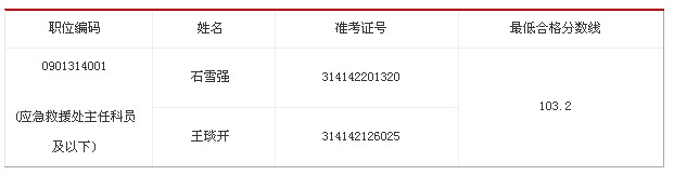 因進(jìn)入面試考生孫騰科、李鵬飛、胡彬3人自愿放棄我局2013年公務(wù)員錄用面試資格,根據(jù)中組部、人力資源和社會(huì)保障部以及國(guó)家公務(wù)員局關(guān)于公務(wù)員招考面試工作的有關(guān)規(guī)定,按照公共科目筆試成績(jī)從高到低的順序遞補(bǔ)2名考生進(jìn)入面試名單,并調(diào)整面試最低合格分?jǐn)?shù)線: