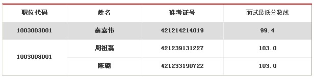 由于部分考生自愿放棄面試資格,根據(jù)中央機(jī)關(guān)及其直屬機(jī)構(gòu)公務(wù)員考試錄用有關(guān)規(guī)定,按公共科目筆試成績由高到低的順序,確定以下3人遞補(bǔ)參加我局2013年招錄公務(wù)員面試。