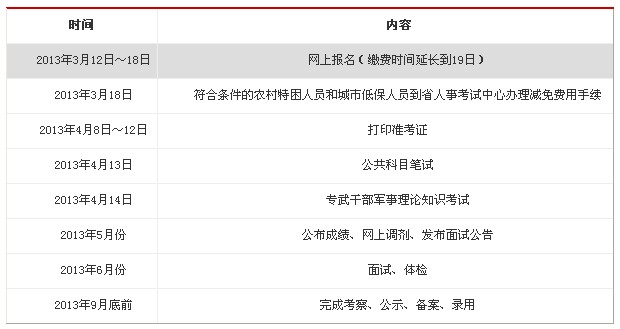 2013年江西省考試錄用公務(wù)員日程安排表