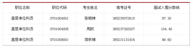 因部分考生放棄面試資格,根據(jù)公務(wù)員招考有關(guān)規(guī)定,擬在公共科目筆試合格的考生中,按照筆試成績(jī)從高到低的順序,遞補(bǔ)以下考生為面試人選: