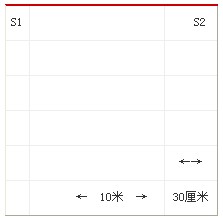 場(chǎng)地器材:10米長(zhǎng)的直線跑道若干,在跑道的兩端線(S1和S2)外30厘米處各劃一條線(圖1)。木塊(5厘米×10厘米)每道3塊,其中2塊放在S2線外的橫線上,一塊放在S1線外的橫線上。秒表若干塊,使用前應(yīng)進(jìn)行校正。