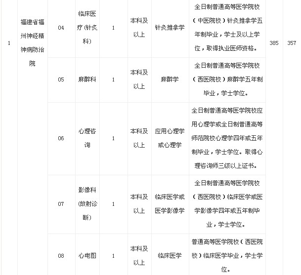 3、若出現(xiàn)福建省閩清精神病防治院臨床醫(yī)療(精神科)專業(yè)崗位的聘用考生人數(shù)不足時(shí),可以從報(bào)考福州神經(jīng)精神病防治院的臨床醫(yī)療(精神科)專業(yè)崗位符合聘用條件,但因聘用人數(shù)限制而落聘的考生,自愿調(diào)劑到福建省閩清精神病防治院工作的,按總分高低依次確定進(jìn)行調(diào)劑。