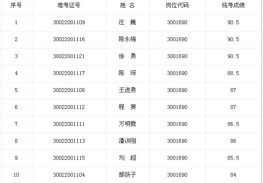 根據(jù)應聘人員統(tǒng)考筆試成績從高分到低分的順序,按照1∶5比例確定參加專業(yè)測試人員名單,并進行資格復審(名單、成績附后)。