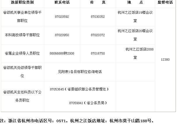2013年浙江省直單位競(jìng)爭(zhēng)性選拔干部各部門聯(lián)系方式