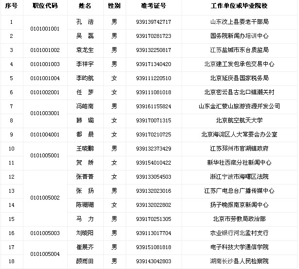根據(jù)中央組織部、人力資源和社會保障部、國家公務員局的統(tǒng)一部署,經(jīng)過筆試、面試、體檢和考察等程序,擬錄用孔浩等30名同志為我辦公務員及參照公務員法管理事業(yè)單位工作人員。