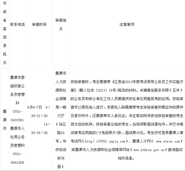 2013年江西鷹潭公務(wù)員面試資格審查時(shí)間表