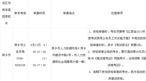 2013年江西萍鄉(xiāng)公務(wù)員面試資格審查時(shí)間表