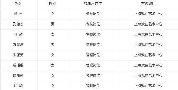 2013年上海越劇藝術傳習所(上海越劇院)擬錄人員公示