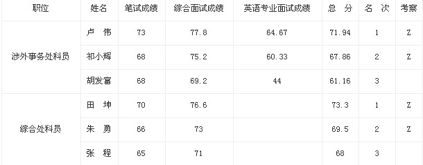 宿遷市人民政府外事辦公室公開選調(diào)公務(wù)員筆試、面試工作已經(jīng)結(jié)束,現(xiàn)將總成績予以公布!