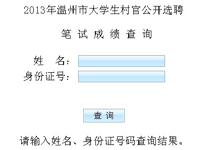 2013年浙江溫州大學(xué)生村官筆試成績查詢系統(tǒng)開通,考生可點擊下面的鏈接進行成績查詢。