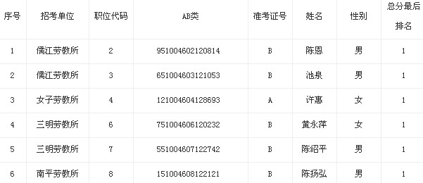 2013年春季勞教系統(tǒng)公務(wù)員考錄體檢名單
