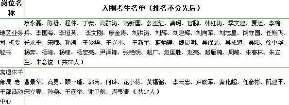 根據(jù)筆試成績從高到低順序,按照每個崗位1:8的比例確定進入面試環(huán)節(jié)人選。各崗位入圍分數(shù)線為: