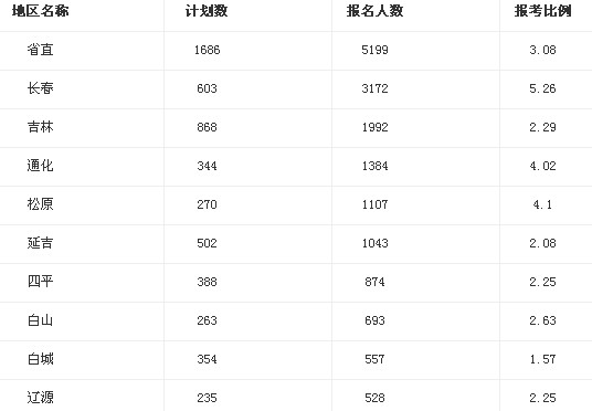 2013年吉林省公務(wù)員考試報(bào)名數(shù)據(jù)統(tǒng)計(jì)