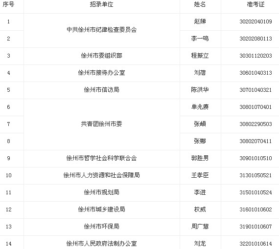 2013年江蘇省無錫市公務(wù)員擬錄用人員名單公示(三)