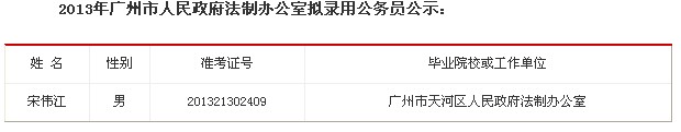 2013年廣東廣州市政府法制辦公室擬錄用公務員公示