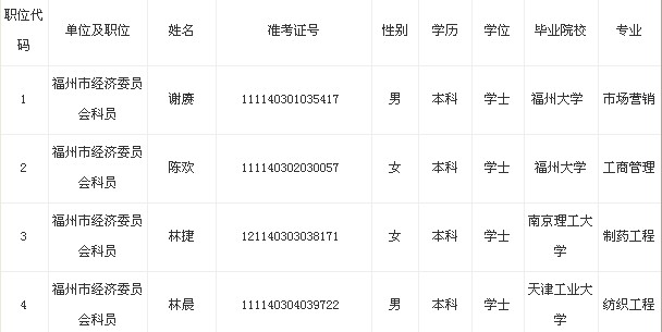 2013年福建福州市經(jīng)濟委員會擬錄用公務(wù)員名單公示