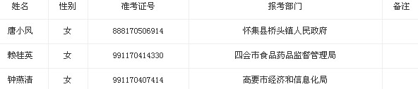 2012年廣東肇慶妊娠期后公務員體檢合格名單
